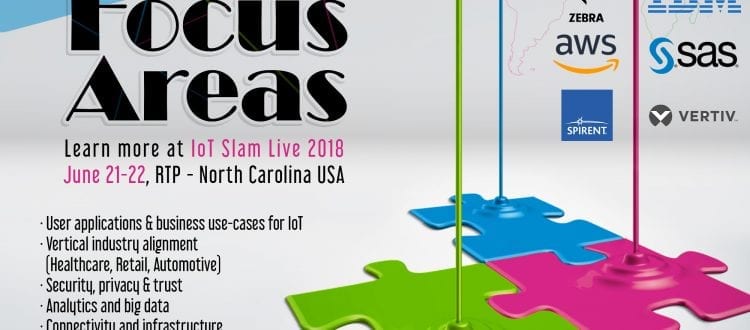The IoT Live Slam® 2018 conference builds on the hugely successful inaugural 2017 event that took place last year at the Research Triangle Park, and represents an unparalleled platform for both established and emerging IoT practitioners, business leaders and executive management across healthcare, retail, consumer product goods, finance, industrial, commercial and public sector industries, – looking for opportunities to leverage, innovate, disrupt and transform society, using IoT, machine learning and cognitive techniques – to meet and learn from the IoT elite in an open, friendly, give to give environment.