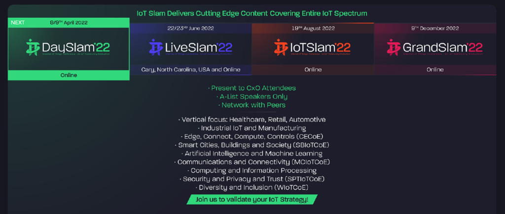 The IoT Community Announces Its Exclusive Agenda For the IoT Slam Live 2022 Conference in Cary, North Carolina, USA and Online hosted at the SAS global Headquarters