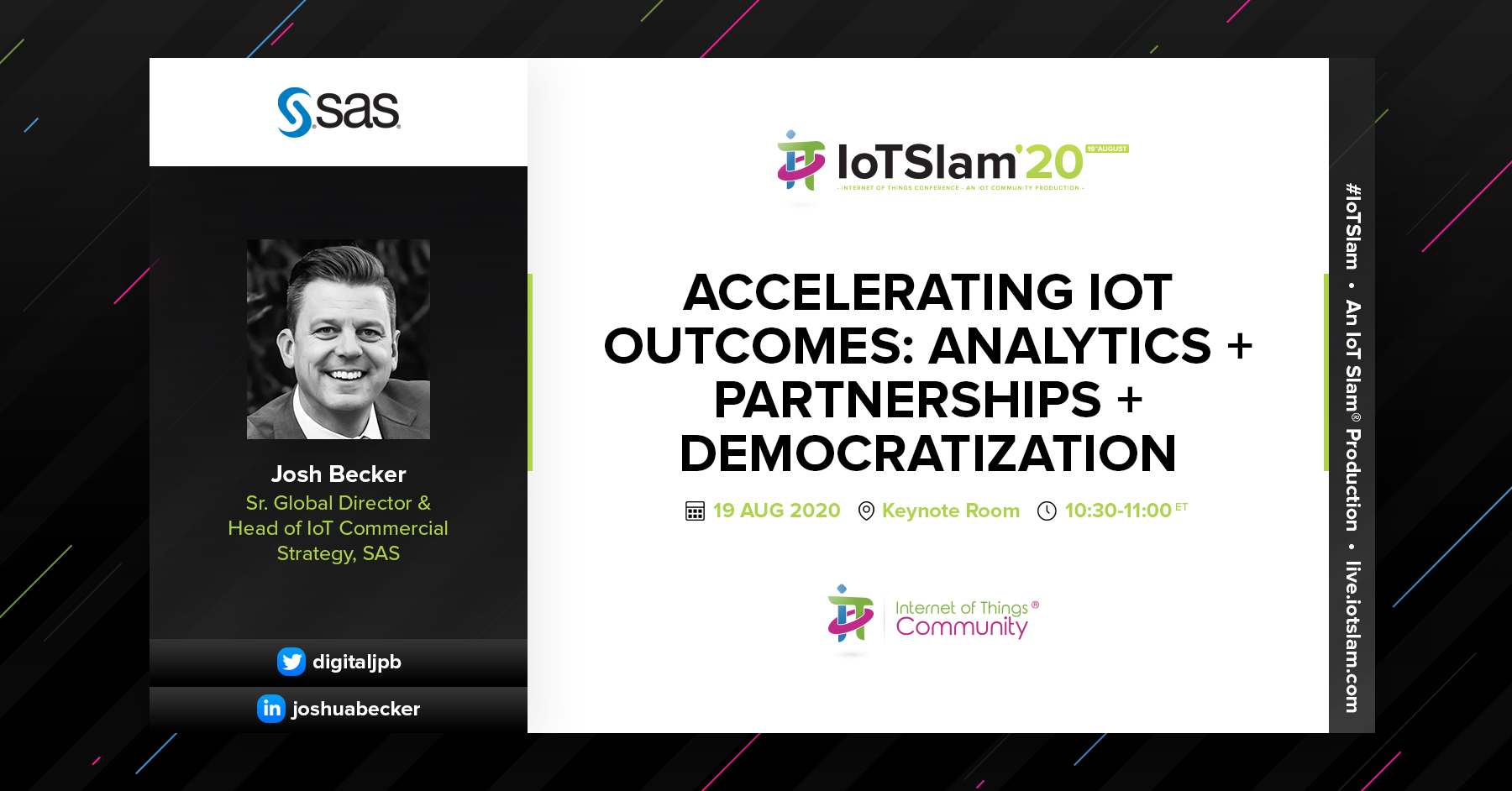 As Senior Global Director and Head of IoT Commercial in SAS’ IoT Division, Josh Becker is responsible for the development and execution of the global IoT commercial strategy. He leads a diverse team of business development professionals, with domain expertise across all verticals. Responsible for co-innovating and co-developing with ecosystem partners, Josh and his team collaborate to build differentiated IoT solutions and create net new revenue. Building on the foundational tenet that analytics, machine learning, and artificial intelligence can improve lives by enabling better decisions, Josh believes that the Internet of Things scales this opportunity significantly and is intensely focused on partnering with others who share this vision. Prior to his current position, Josh served SAS in a variety of roles including: Principal Industrial IoT Business Development Executive, Manufacturing & Industrial Direct Sales, Manufacturing & Supply Chain Industry Consulting, and Manufacturing Solutions Architect. Josh serves on the Board of Directors of the Global Warranty and Service Contract Association (GWSCA), a non-profit organization focused on providing innovation, education and resources to the warranty and service contract industry. Prior to joining SAS, Josh led the Reliability Engineering team for what is now Sub-Zero Group, Inc., a manufacturer of luxury appliance brands Sub-Zero, Wolf, and Cove. Josh received a Bachelor of Science degree in Mechanical Engineering from the University of Wisconsin-Madison, as well an MBA in Technology Management.