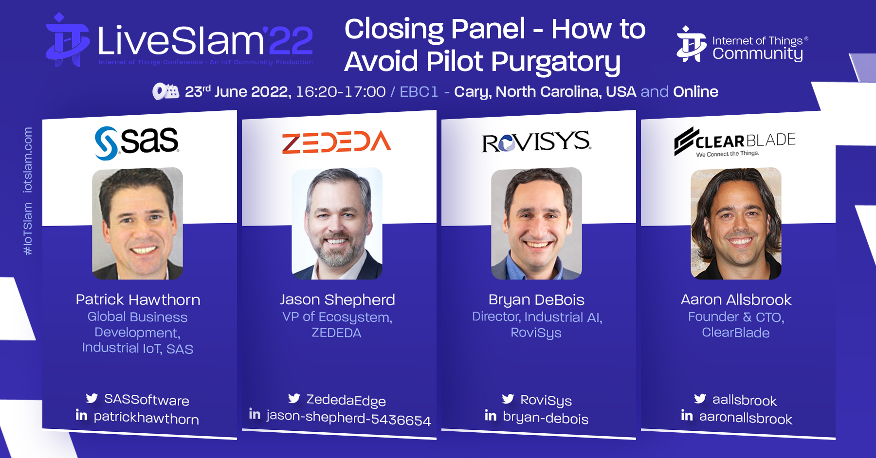 The gap between an organization’s aspirations for an IoT project and the realities of moving from proof of concept to a full scale deployment is known as “pilot purgatory”. Gathering trusted partners and managing the organization’s analytical maturity can help bridge the gap between superficial success and real, tangible value. Join us to learn how operationalizing AI, orchestrating on the edge, and ingesting data in real-time and at scale can help you avoid the “pilot purgatory”.