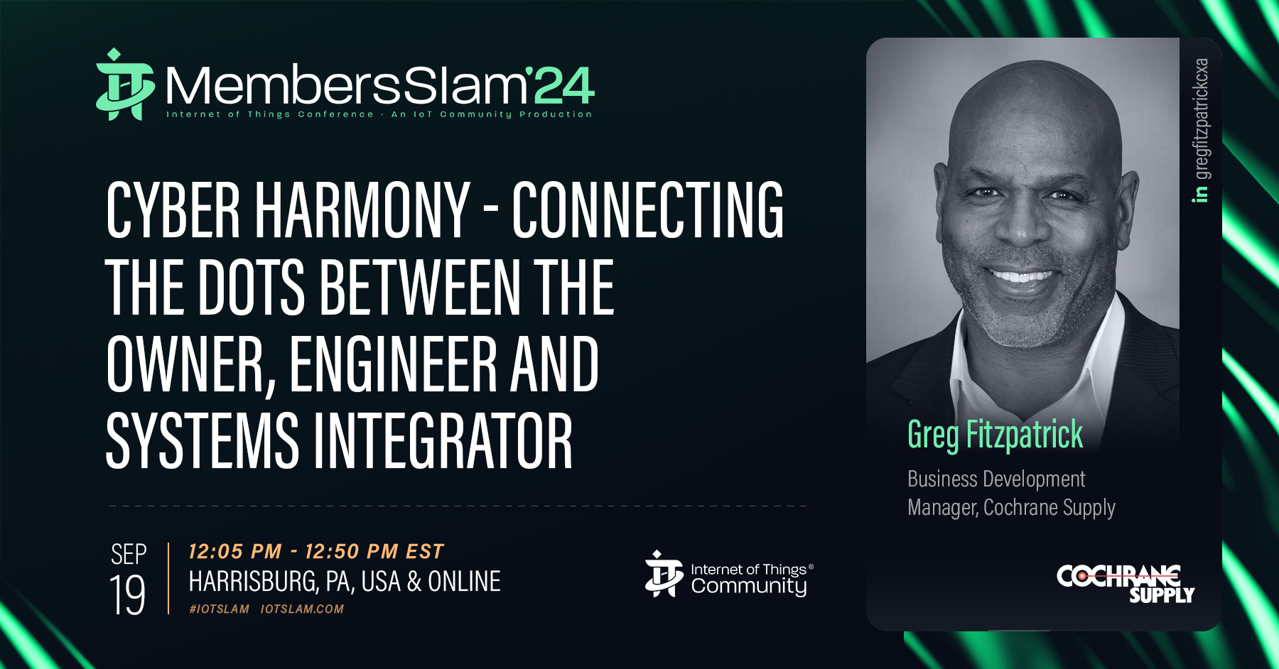 Greg is currently the Business Development Leader for IoT and Integration for Cochrane Supply & Engineering. In 2022, Greg was appointed to the role of Executive Director for the Real Estate Cyber Consortium (RECC), promoting “Cyber Harmony” in our industry through leadership and insight on best practices, policies, and procedures for real estate owners, operators, and solution providers in the area of cyber awareness.