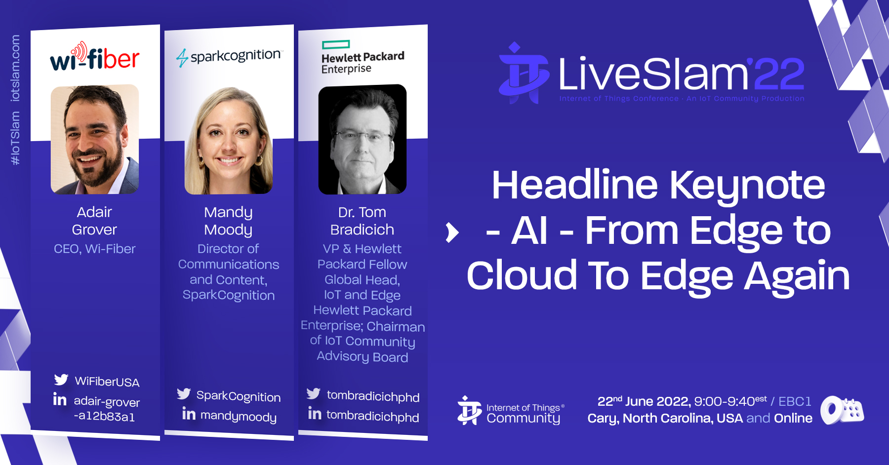 Although AI has achieved celebrity status today, the record of its mid-century origin shows early application in what today are called the 3 PC’s of the edge and IoT –“perpetual connectivity, pervasive computing, and precision control”. After a period of contracting into the datacentre, today AI is experiencing an unleashed ascendency at the edge, supported by the connectivity and smart things in the IoT. Join Dr. Tom Bradicich, Hewlett Packard Enterprise Fellow, and his special guests as they share deep insights into the technology of how AI operates at the edge and IoT, and its societal and business benefits.