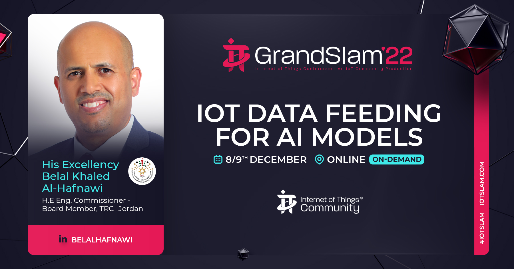 H.E. Eng Belal Al-Hafnawi. Is An ICT Executive leader experienced in Technology, Management, leadership, regulatory and Strategy. Currently working a Commissioner/ Full time Board Member in Telecommunications Regulatory Commission (TRC). His Excellency Belal is Having (20) years of intensive experience in technology, telecommunications, information technology and digital transformation. He has worked with several international mobile network vendors and service providers (Huawei, Motorola, Nokia and Samsung Electronics and STC. He has wide work experience in various telecommunications fields, which included management, advisory, strategy, technical consulting, managing complex programs/projects, operation management and Quality. He holds bachelor and Master’s degree in Telecommunications from university of Jordan, And holds executive certification in Management and Leadership from Massachusetts Institute of Technology (MIT)/United states, focused on business implications in Artificial Intelligence and Internet of things and platform strategies. He is technical writer, author and international speaker. https://www.linkedin.com/in/belalhafnawi