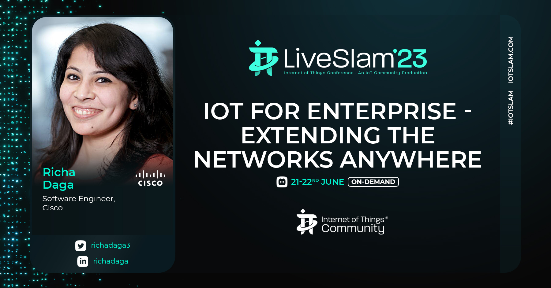 As we talk about achieving the full potential of IoT, we realize that network connectivity is the backbone that makes IoT possible. So, is connecting everything within the enterprise enough for the success of IoT use cases? The answer to this depends on where lies the devices that need to be connected. IoT devices and traditional enterprise end devices can be required anywhere – outdoors in extreme temperatures – thus causing the need to extend connectivity far beyond air-conditioned spaces. For instance, warehouses require ruggedized networking products due to dust, heat, cold, and dampness. Automation, visibility, and security are the other essential pillars that make enterprise IoT applications successful. Intent-based networking in the enterprise industry is the way to go as a policy-based security platform and for automated network management. The intent-based network continuously monitors and adjusts to ensure alignment with business intent through a closed-loop system, including network analytics and machine learning. Network-based automation helps to achieve operational results faster and reduces downtime. With time being critical and expensive, new devices and services need quick and remote deployment. Applications that can manage multiple sites remotely allow the network engineer to centrally manage the inventory of network devices and define security policy once, which gets pushed to each site. Routers, switches, and wireless access points comprise the physical components of a logical entity, fabric, a self-contained network entity that provides routing and security for the end devices attached to it. Connection to this fabric edge or extended node can help deploy a network service. Join this session in IoT Live Slam’23 for insights into the right solutions and the requirements to extend networks anywhere to meet the true potential of enterprise IoT use cases. The session will highlight the software solutions that can design, define policy, secure, and provision the network infrastructure.