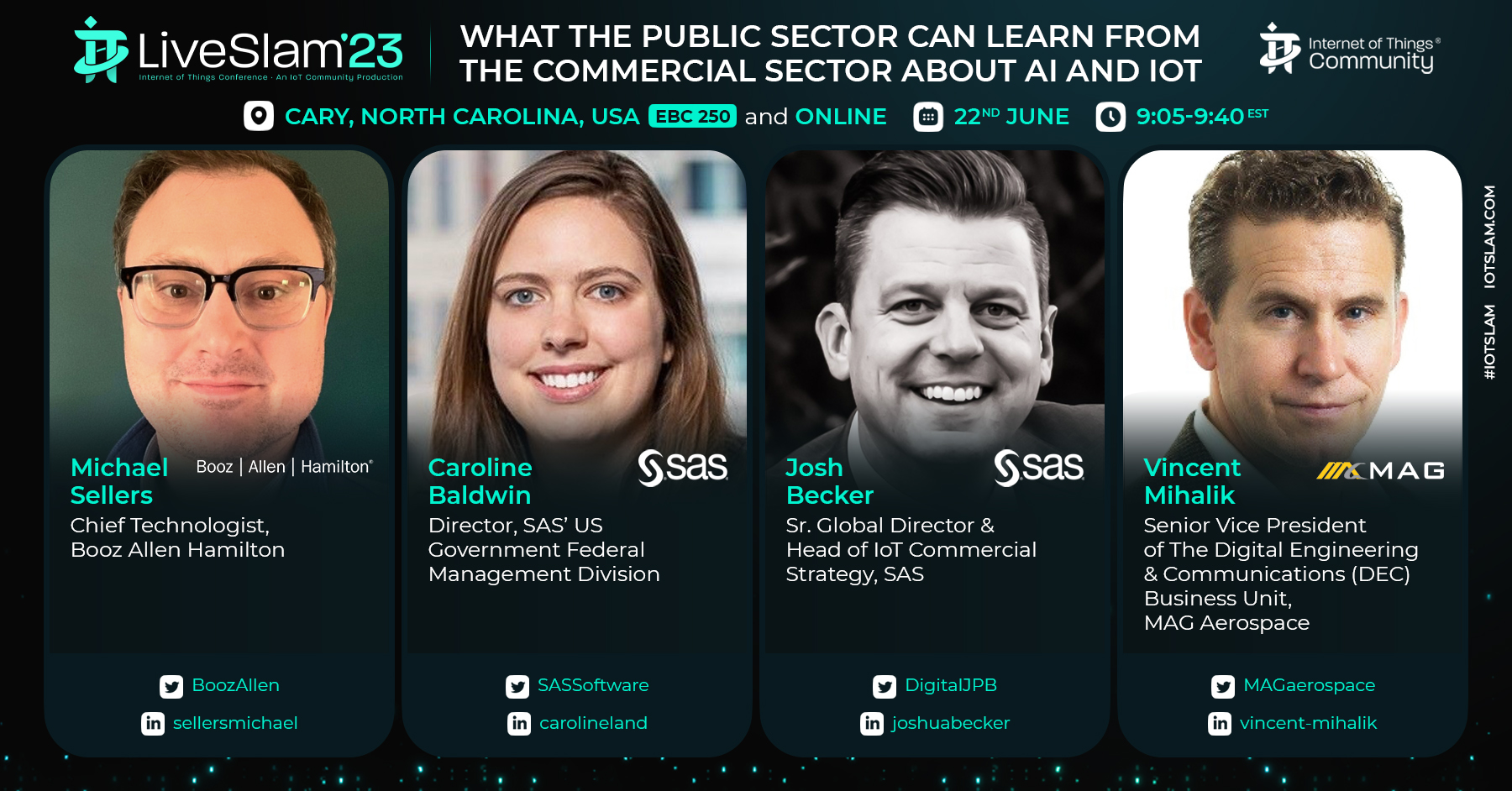 As Senior Global Director and Head of IoT Commercial in SAS’ IoT Division, Josh Becker is responsible for the development and execution of the global IoT commercial strategy. He leads a diverse team of business development professionals, with domain expertise across all verticals. Responsible for co-innovating and co-developing with ecosystem partners, Josh and his team collaborate to build differentiated IoT solutions and create net new revenue. Building on the foundational tenet that analytics, machine learning, and artificial intelligence can improve lives by enabling better decisions, Josh believes that the Internet of Things scales this opportunity significantly and is intensely focused on partnering with others who share this vision. Prior to his current position, Josh served SAS in a variety of roles including: Principal Industrial IoT Business Development Executive, Manufacturing & Industrial Direct Sales, Manufacturing & Supply Chain Industry Consulting, and Manufacturing Solutions Architect. Josh serves on the Board of Directors of the Global Warranty and Service Contract Association (GWSCA), a non-profit organization focused on providing innovation, education and resources to the warranty and service contract industry. Prior to joining SAS, Josh led the Reliability Engineering team for what is now Sub-Zero Group, Inc., a manufacturer of luxury appliance brands Sub-Zero, Wolf, and Cove. Josh received a Bachelor of Science degree in Mechanical Engineering from the University of Wisconsin-Madison, as well an MBA in Technology Management.