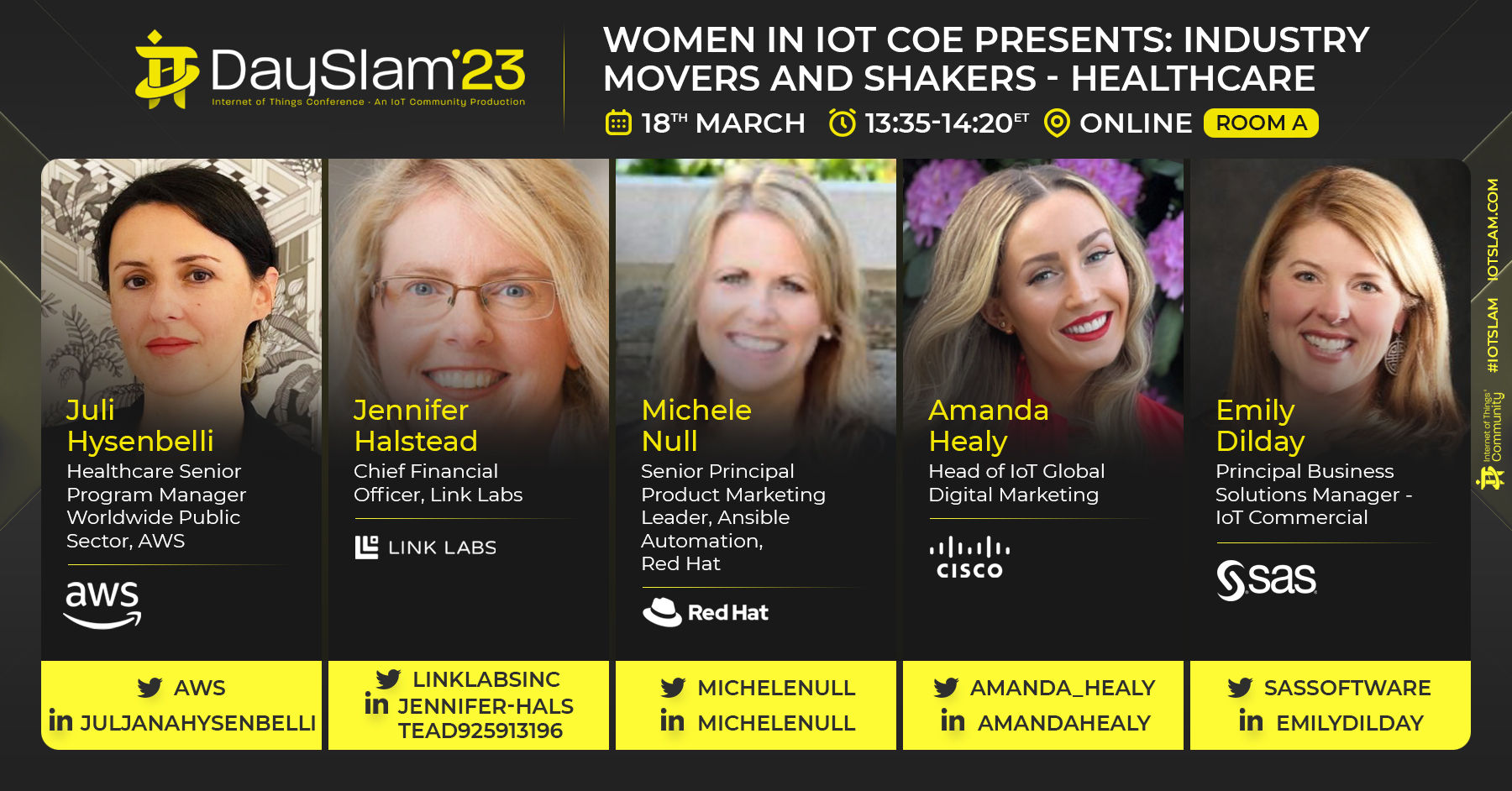 Join us for the first of four in our 2023 series: “Industry Movers and Shakers”. Throughout the year, you’ll hear from women who are illuminating IoT across industries. In this session, you’ll learn how healthcare is taking major steps forward thanks to the power of IoT and AI.